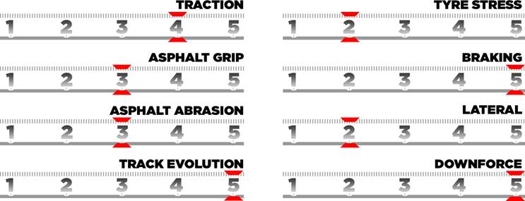 Medium și Hard vor fi în mod clar compușii aleși pentru cursă, dar Soft ar putea intra în joc pentru orice pilot care dorește să profite la maximum de aderența suplimentară la start sau dacă există o perioadă de Safety Car spre finalul cursei. Modificările aduse configurației pistei în urmă cu câțiva ani înseamnă că depășirile sunt puțin mai ușoare, deși, evident, este încă destul de complicat să depășești o altă mașină. Prin urmare, posibilitatea de a profita de diferența mare de performanță dintre compușii Soft relativ noi și cei Medium sau Hard care au parcurs multe ture ar putea fi un factor de luat în considerare.